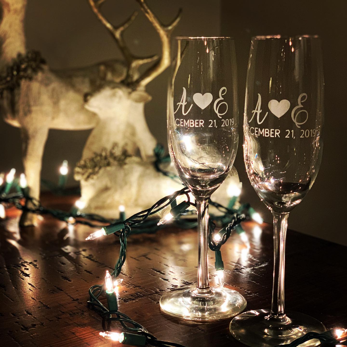 Welcome your clients into their new home with a set of custom wine or champagne glasses. Set of 2.