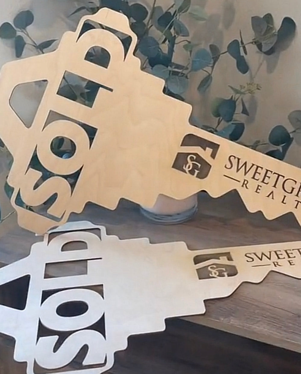 Use this sign at closing to market yourself for future clients on your social media. This is made from 1/4" Baltic birch and can be stained or not, depending on your preference.