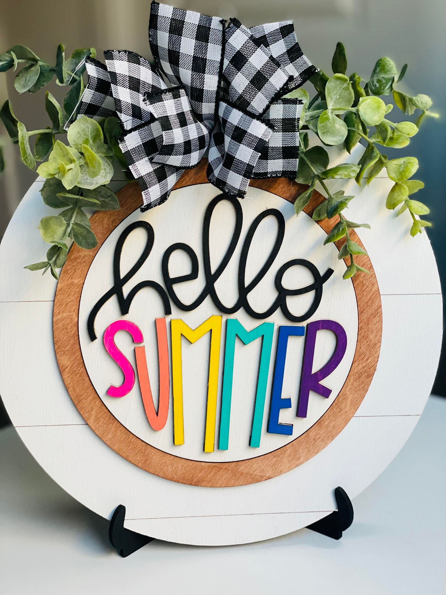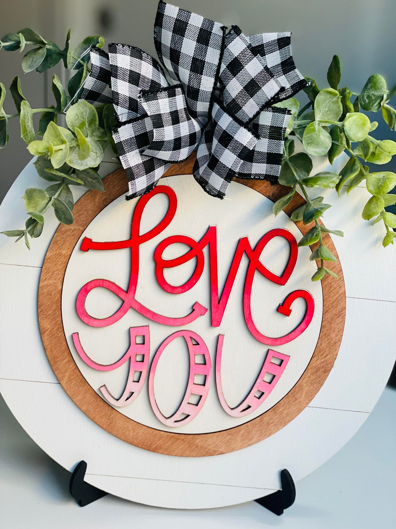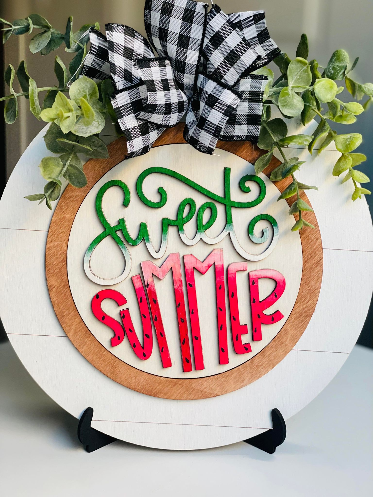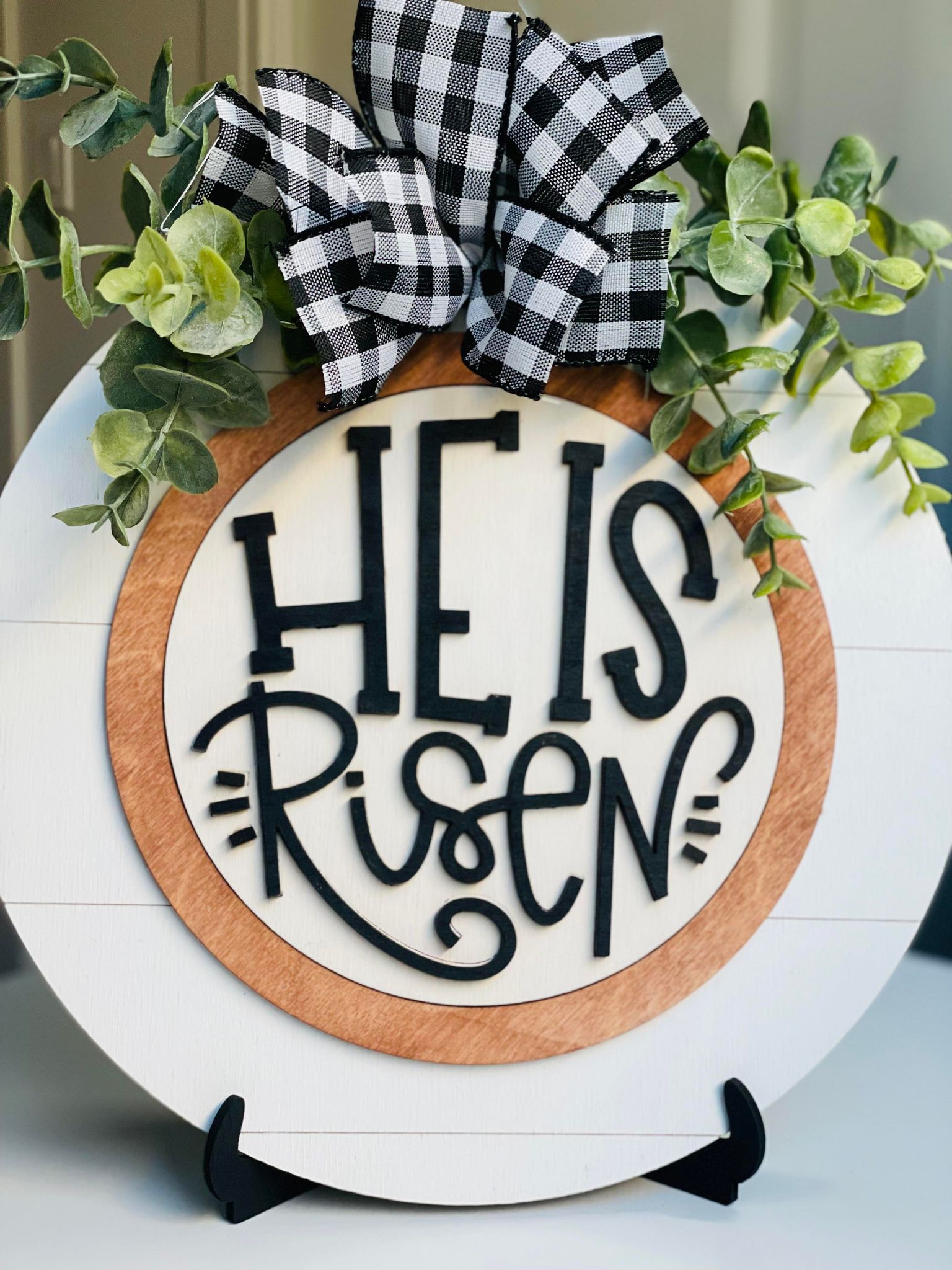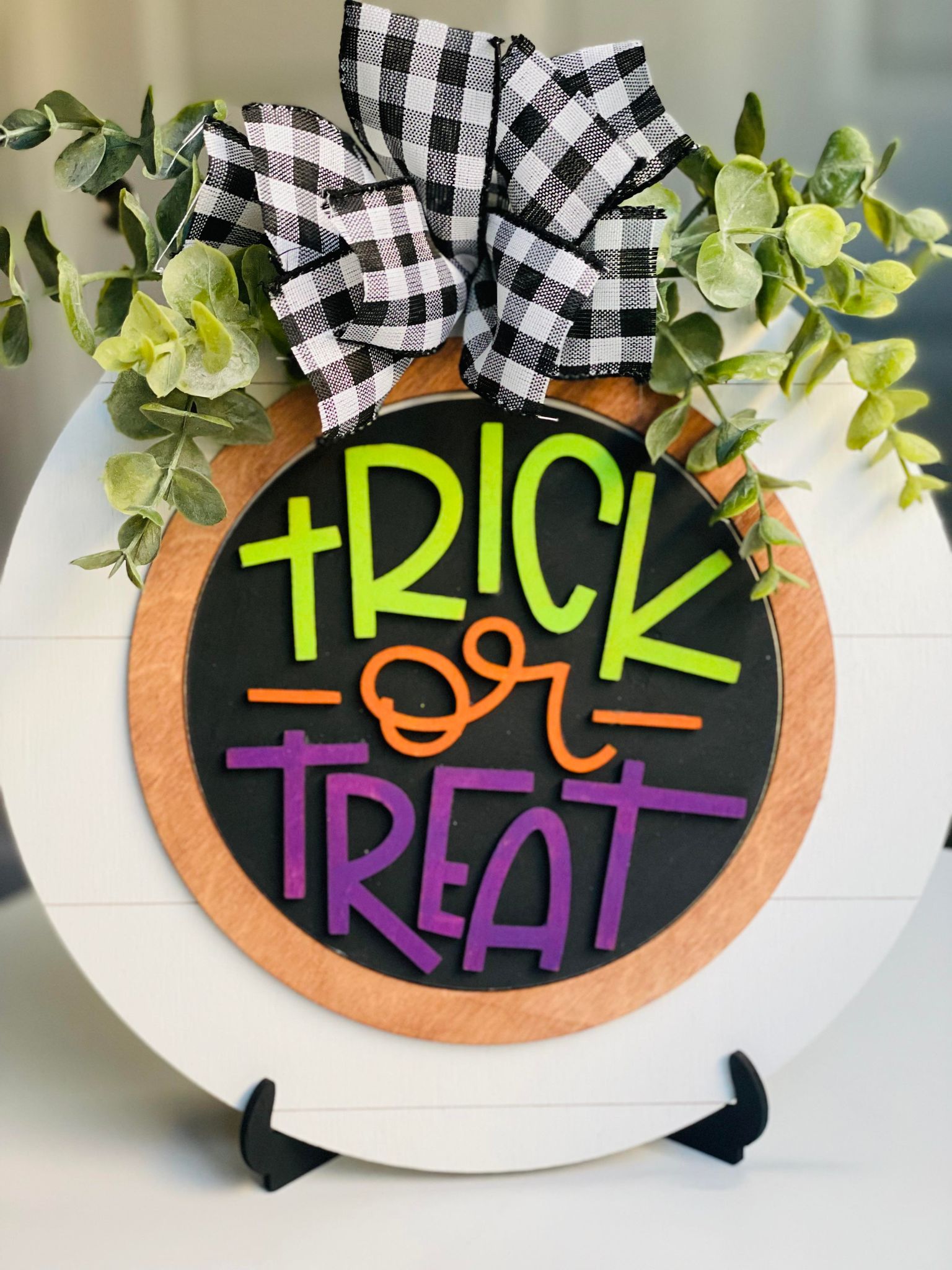 Keep something in the house that can be updated with the season or holiday. Perfect décor item for entry way, kitchen, office, you name it! It is made from 1/8" birch. It can come painted as seen here, painted in black and white only, or unpainted as a DIY project. Includes stand, greenery and a bow and (4) inserts. Additional inserts can be purchased, see the Seasonal Sign Inserts product page.