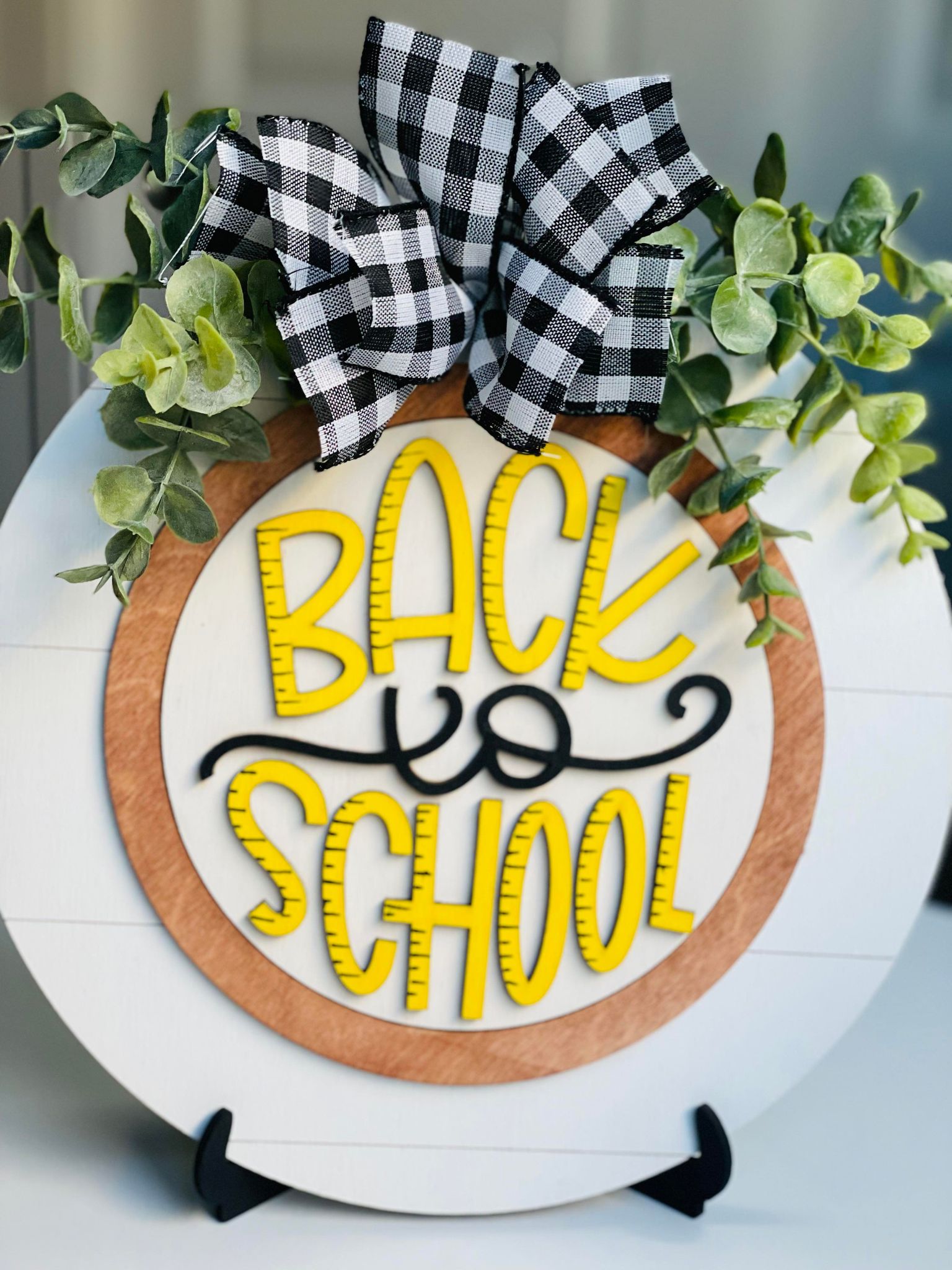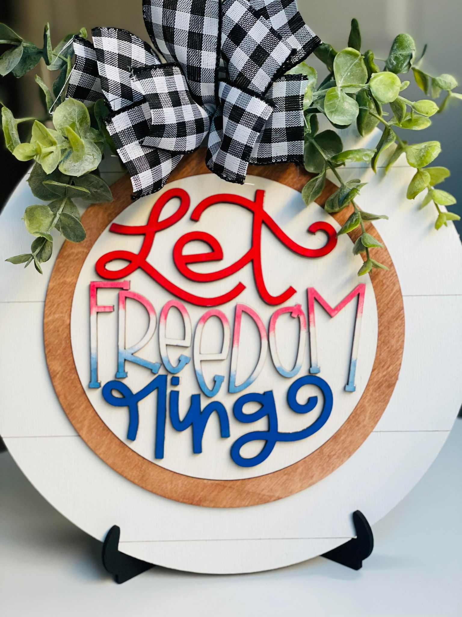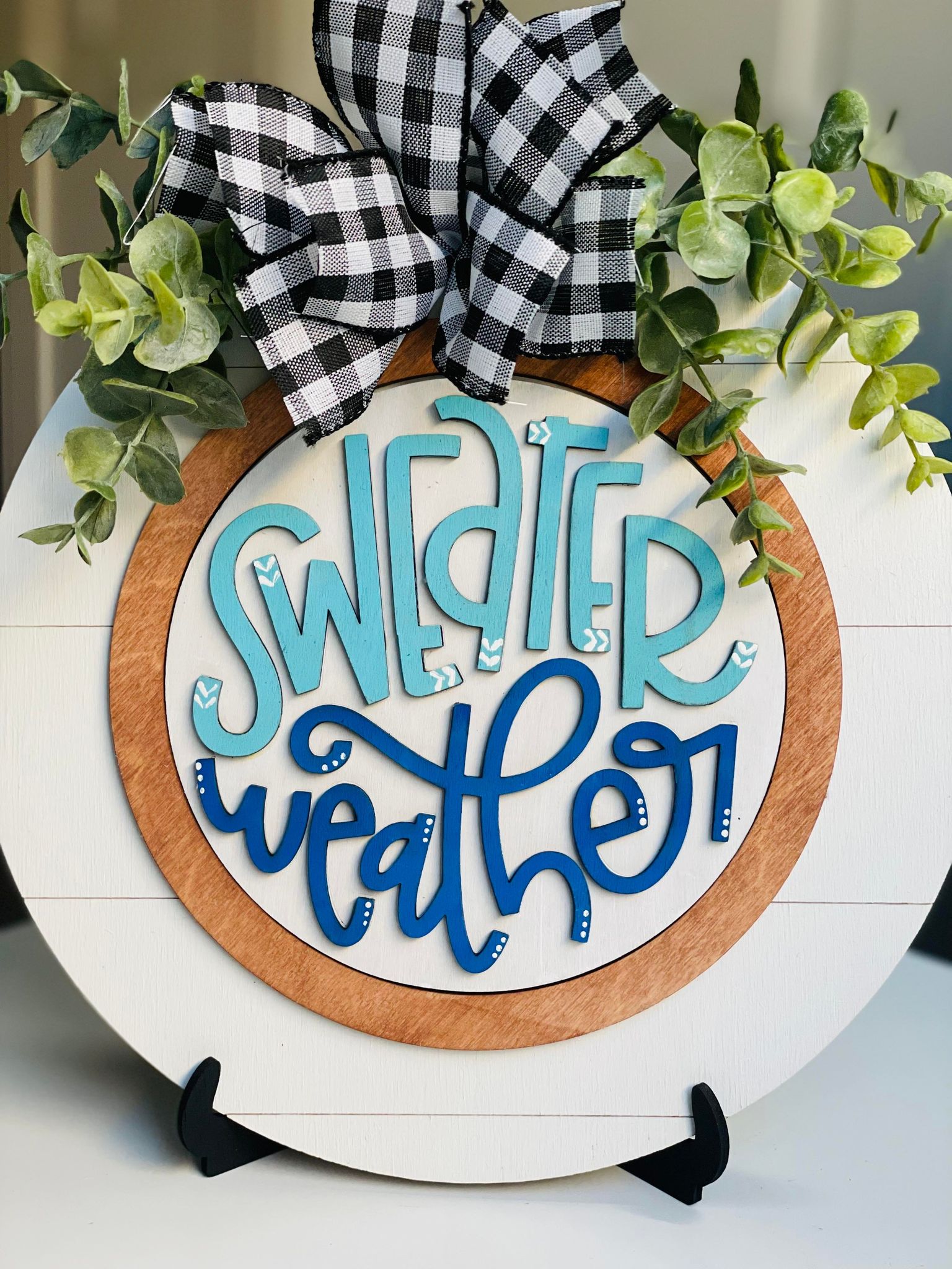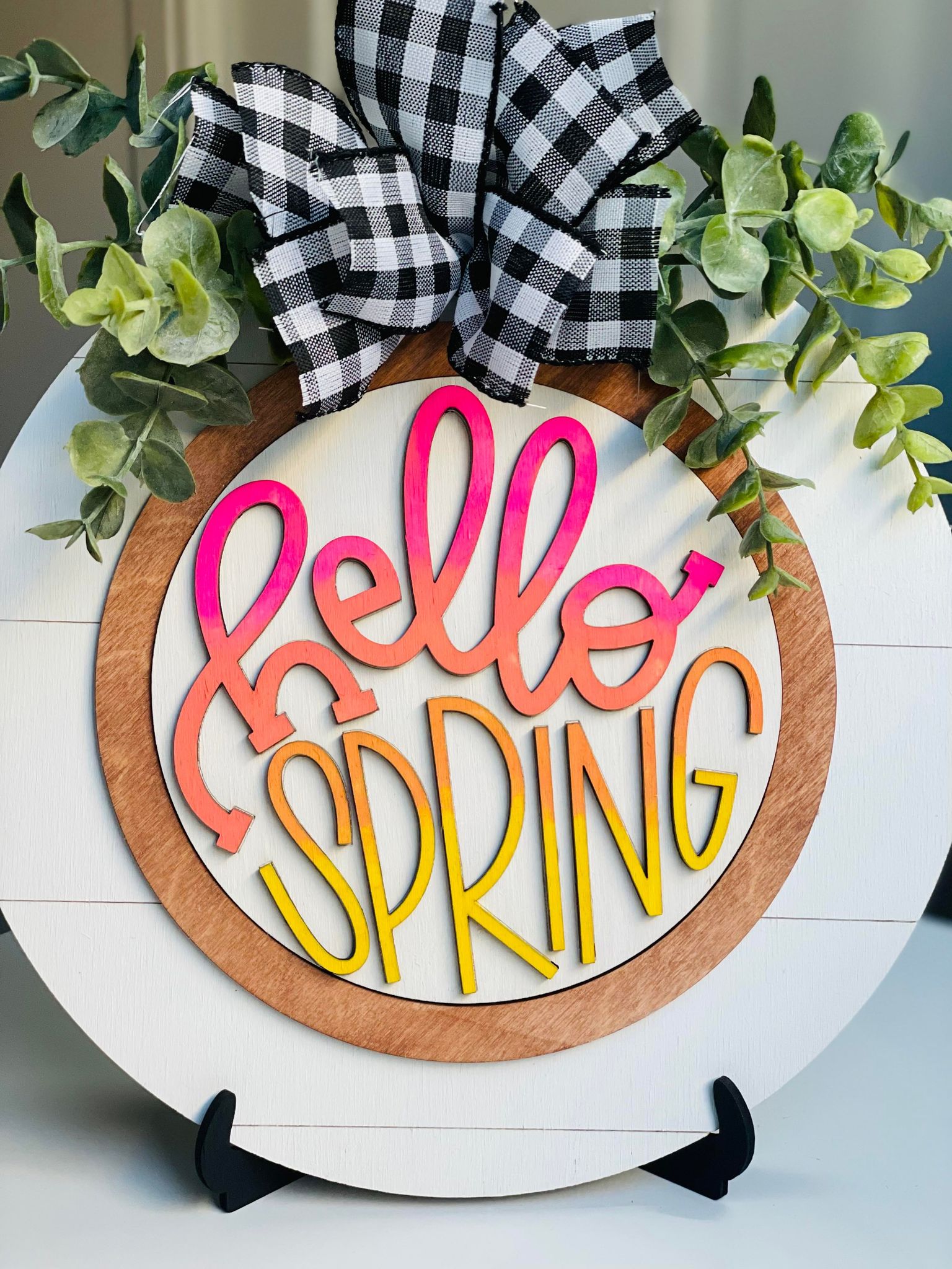 Keep something in the house that can be updated with the season or holiday. Perfect décor item for entry way, kitchen, office, you name it! It is made from 1/8" birch. It can come painted as seen here, painted in black and white only, or unpainted as a DIY project. Includes stand, greenery and a bow and (4) inserts. Additional inserts can be purchased, see the Seasonal Sign Inserts product page.