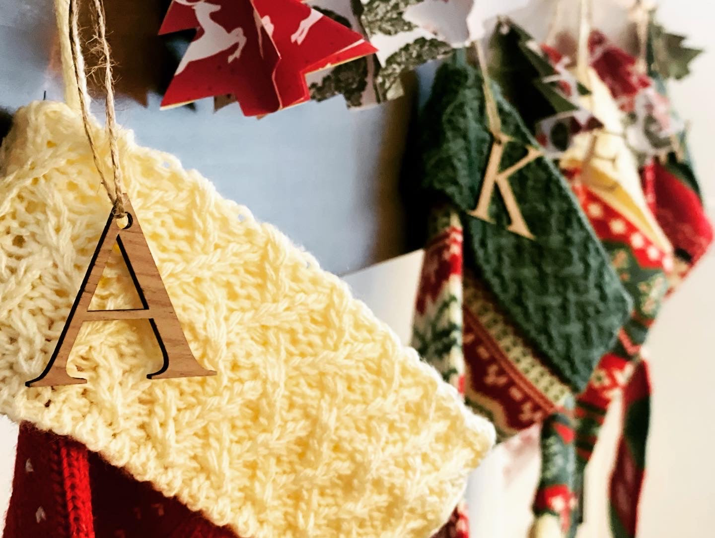 Personalize your stockings with these monogram tags. Made from 1/8" birch or 1/8" clear acrylic and twine.