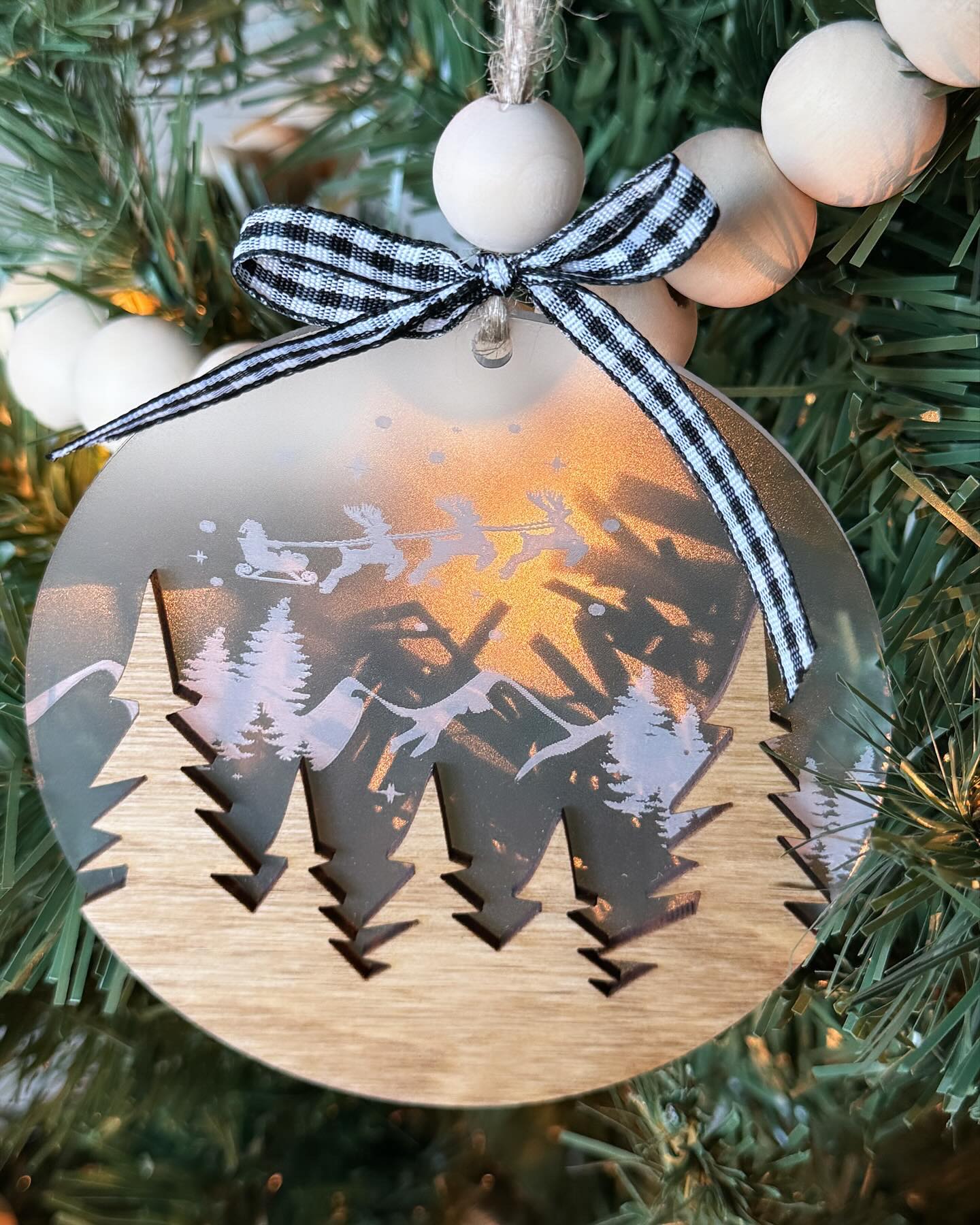 One of our top sellers for Christmas! These Winter Scene Ornaments are great as client gifts for realtors, or even gifts for family, friends and coworkers. Made from 1/8" birch and 1/8" clear acrylic, gives these ornaments a 3D look. Can be ordered with or without personalization.